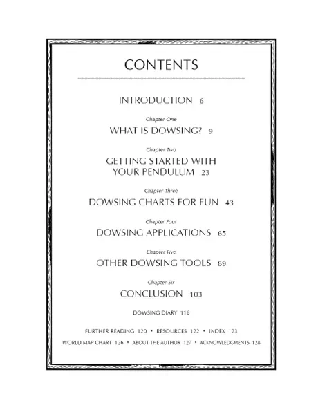 Kit includes:• Pendulum with chain and pouch• 128-page instructional book• 19 dowsing and astrological charts